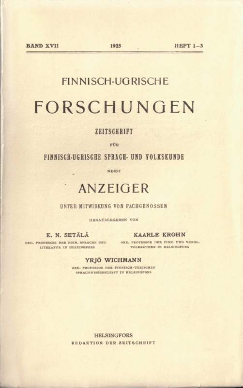 Artturi Kannisto, Die tatarischen lehnwörter im wogulischen. Anton Klemm, Zur geschichte der sog. tempora in den finnisch-ugrischen sprachen. Y. H. Toivonen, Wortgeschichtliche streifzüge 55–64. • ANZEIGER, S. 1–64. A. M. Tallgren, Neues über russische archäologie. • Besprechungen: T. E. Karsten, Svensk bygd i Österbotten nu och fordom. En namnundersökning. I.–II. Selbstbericht. V. J. Mansikka, F. F. Communications. Edited for the Folklore Fellows by... V. Tarkiainen, Suomen kansan vanhat runot. I 1–2. Vienan läänin runot. Hrsg. v. A. R. Niemi; III 1–3. Länsi-Inkerin runot. Hrsg. v. Väinö Salminen (u. V. Alava); IV 1. Keski-Inkerin runot. Hrsg. v. Väinö Salminen; IX 1–4. Hämeen runot. Hrsg. von der Tavastländischen Landsmannschaft. U. Holmberg, T. Lehtisalo Entwurf einer Mythologie der Jurak-Samojeden. • Mitteilungen: V. J. Mansikka, † Antti Aarne.