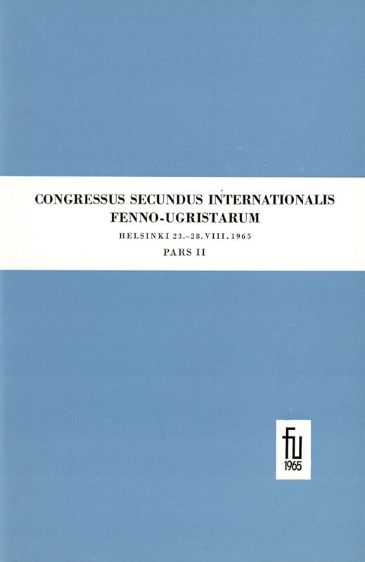 Congressus secundus internationalis Fenno-Ugristarum Helsingiae habitus 23.–28. VIII. 1965. Pars II. Acta ethnologica.