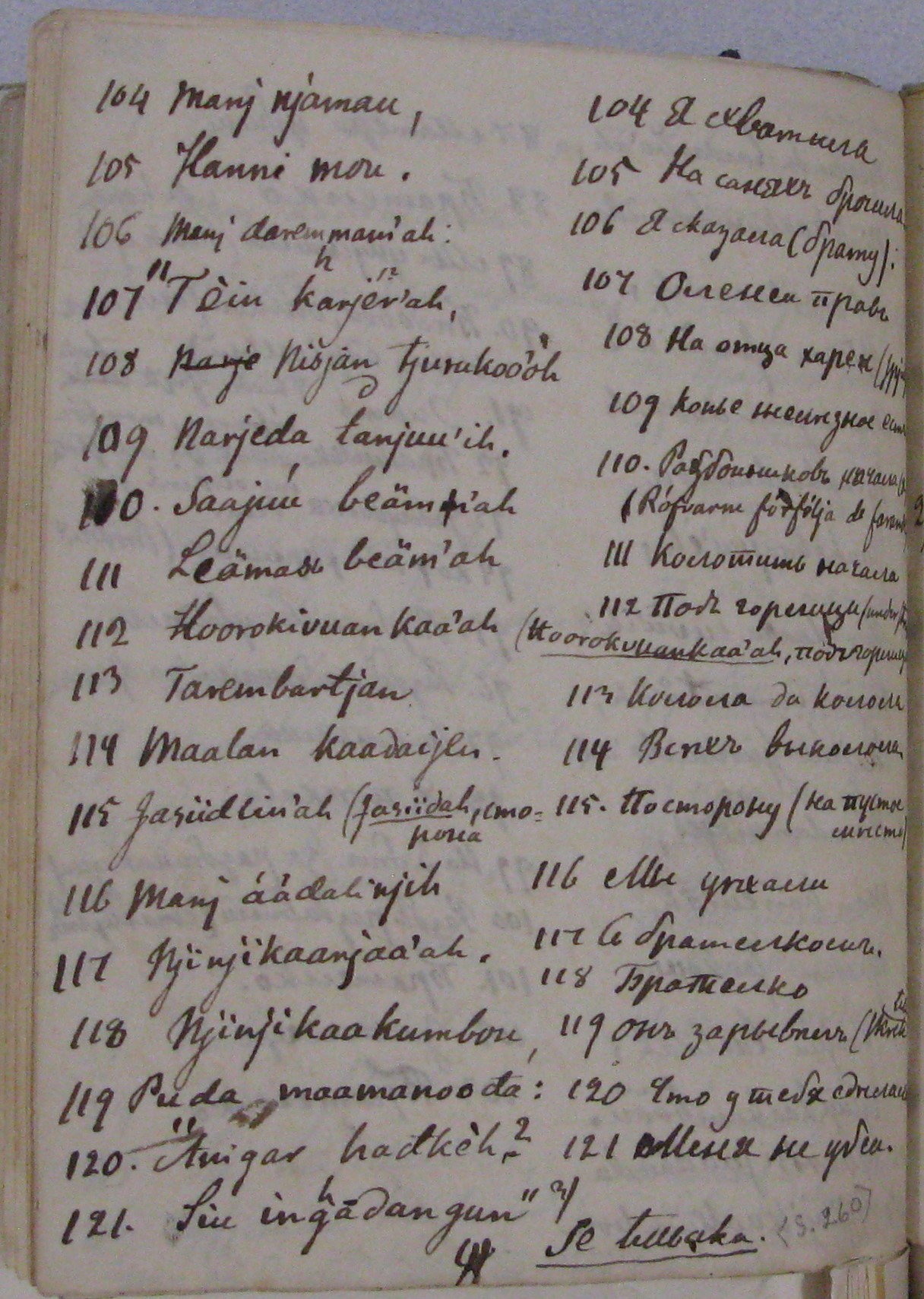 Note by Castrén: (under stang) (Hoorokuvuankaa'ah, подьгорлица