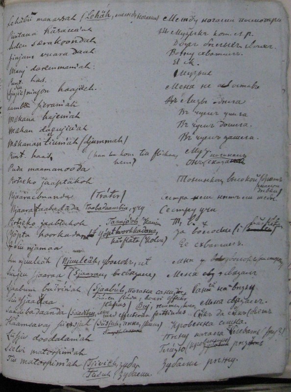 Note by Castrén: (Sjaabúh, погана сани, d.ä. en släda, hvari effecter släpas) Buj, remmen, hvarmed effecterna fastbindas